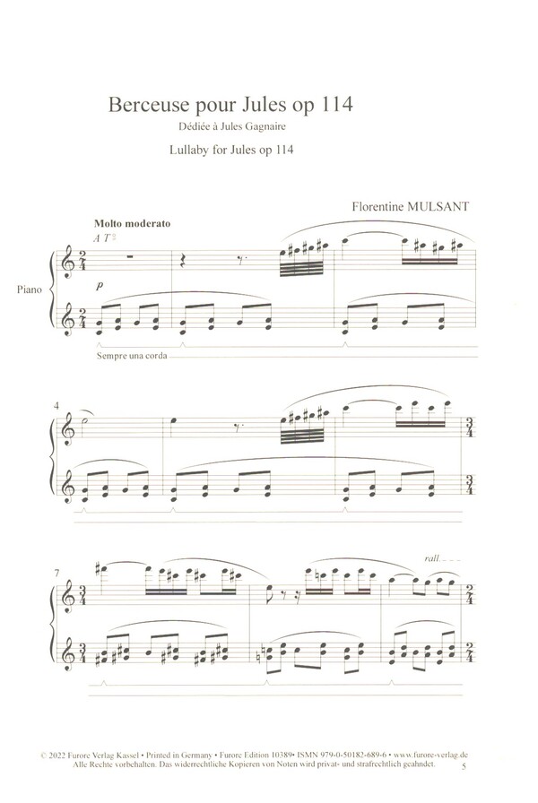 Ein Wiegenlied für Klavier, komponiert anlässlich der Geburt von Jules Gagnaire, dem es auch gewidmet ist. Traumhaft und süß, möge es Babys beim Einschlafen begleiten.