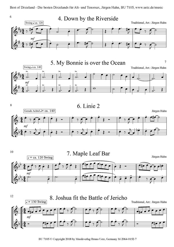 Sax Attack Die besten Dixielands Oh when the Saints Blues on the Roof Just a closer Walk Down by the Riverside My Bonnie is over the Ocean Linie 2 Maple Leaf Bear Joshua fit the Battle of Jericho Blue and black New Orleans Time You and me Oh yes Beans and Rice