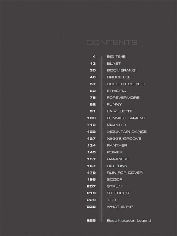 3 Deuces Big Time Blast Boomerang Bruce Lee Could it be You Ethiopia Forevermore Funny La Villette Lonnie's lament Maputo Mountain Dance Nikki's Groove Panther Power Rampage Rio Funk Run for Cover Scoop Strum Tutu What is hip