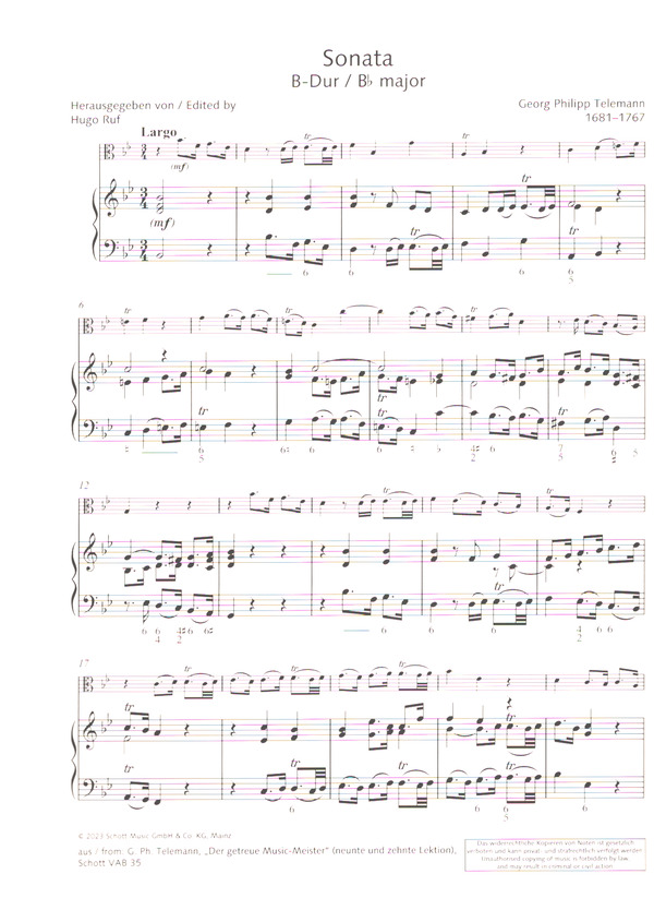 Mit der Sammlung Best of Viola Classics 16 beliebte Vortragsstücke für Viola und Klavier legt Schott eine Auswahl an Werken vor, die Schülerinnen und Schüler über viele Unterrichtsjahre begleiten kann. Der Band umfasst Kompositionen aus der Zeit von Georg Philipp Telemann (16811767) bis Volker David Kirchner (19422020) und bietet somit Spielmaterial von der Barockzeit bis in das 20. Jahrhundert. Die Sammlung, in der neben bekanntem Repertoire auch neu zu entdeckende Werke enthalten sind, empfiehlt sich für Unterricht und Wettbewerbe genauso wie für Vorspiele und Konzerte. Georg Philipp Telemann: Sonata B-Dur / Bb major aus / from: Der getreue Music-Meister Luigi Boccherini: Minuetto aus / from: Sonata c-Moll / C minor Johann Nepomuk Hummel: Allegretto moderato aus / from: Sonata Es-Dur / Eb major, op. 5/3 Robert Schumann: Märchenbild Nr. 3 / Fairy-Tale Picture No. 3, op. 113/3 Märchenbild Nr. 4 / Fairy-Tale Picture No. 4, op. 113/4 Friedrich Kiel: Romanze Nr. 2 / Romance No. 2, op. 69/2 Romanze Nr. 3 / Romance No. 3, op. 69/3 Emanuele Muzio: Andante Anton Rubinstein: Morceau de Salon No. 2 Joseph Joachim: Hebräische Melodie Nr. 1 / Hebrew Melody No. 1, op. 9/1 Hebräische Melodie Nr. 2 / Hebrew Melody No. 2, op. 9/2 Heinrich von Herzogenberg: Legende Nr. 1 / Legend No. 1, op. 62/1 Robert Fuchs: Phantasiestück Nr. 2 / Fantasy Piece No. 2, op. 117/2 Alexander Sergej Tanejew: Feuillet dalbum / Albumblatt / Album Leave, op. 33 Johanna Senfter: Scherzo aus / from: Viola-Sonata F-Dur / F major, op. 41 Volker David Kirchner: Paso doble aus / from: Nostalgia