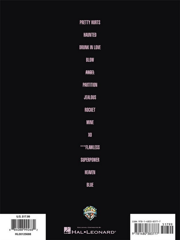 1. Blow 2. Blue 3. Drunk In Love 4. Flawless 5. Haunted 6. Heaven 7. Jealous 8. Mine 9. No Angel 10. Partition 11. Pretty Hurts 12. Rocket 13. Superpower 14. XO