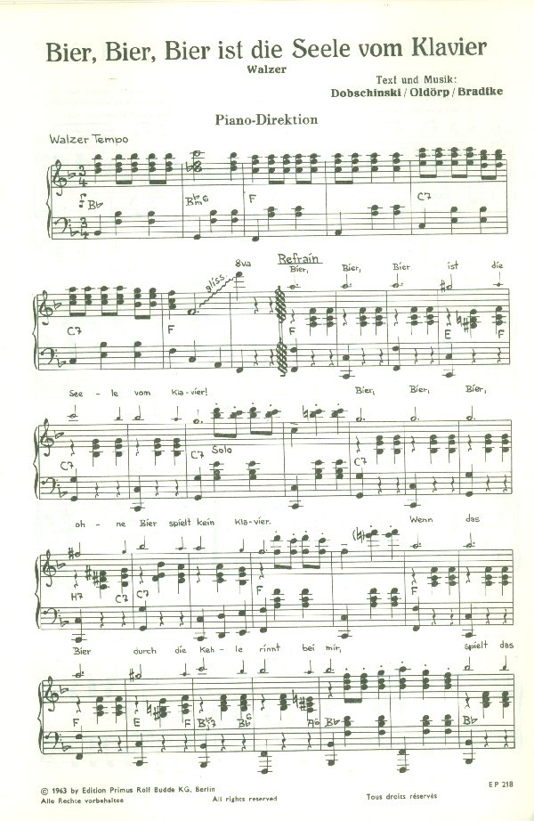 Bier Bier Bier ist die Seele vom Klavier und