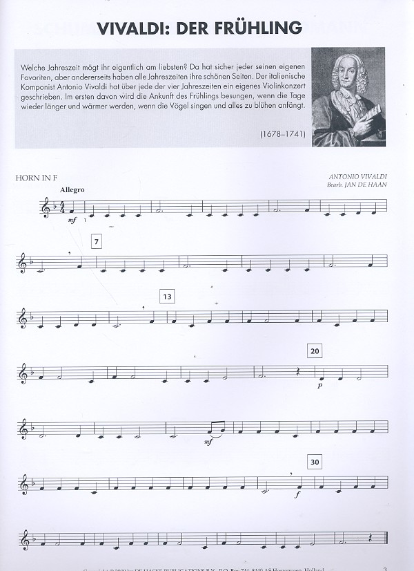 Haan, Jan de, ed abgestimmt auf Essential Elements Band 1 und 2 (Hal Leonard) Kleine Meisterwerke für den großen Auftritt Mohrentanz (Susato) Der Frühling (Vivaldi) Musette (Bach) Fröhlicher Landmann (Schumann) L'Innamorata (Gastoldi) Kaiserquartett (Haydn) Forellenquintett (Schubert) Ouvertüre zu Wilhelm Tell (Rossini) An der schönen blauen Donau (Strauß) Trumpet Voluntary (Clarke) Halleluja (Händel) Für Elise (Beethoven) Capriccio italien (Tschaikowsky) Aus der Neuen Welt (Dvorak) Eine kleine Nachtmusik (Mozart) Ungarischer Tanz Nr.5 (Brahms) Land of Hope and Glory (Elgar) La donna è mobile (Verdi) Hochzeitsmarsch (Wagner) Cancan (Offenbach) Sinfonie Nr.1 (Mahler) Summertime (Gershwin)