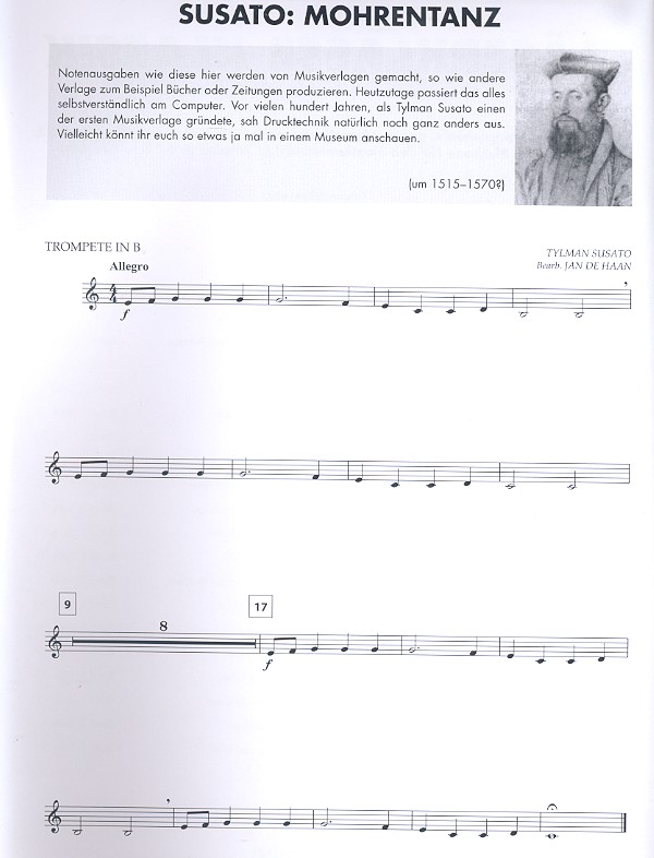 Haan, Jan de, ed abgestimmt auf Essential Elements Band 1 und 2 (Hal Leonard) Kleine Meisterwerke für den großen Auftritt Mohrentanz (Susato) Der Frühling (Vivaldi) Musette (Bach) Fröhlicher Landmann (Schumann) L'Innamorata (Gastoldi) Kaiserquartett (Haydn) Forellenquintett (Schubert) Ouvertüre zu Wilhelm Tell (Rossini) An der schönen blauen Donau (Strauß) Trumpet Voluntary (Clarke) Halleluja (Händel) Für Elise (Beethoven) Capriccio italien (Tschaikowsky) Aus der Neuen Welt (Dvorak) Eine kleine Nachtmusik (Mozart) Ungarischer Tanz Nr.5 (Brahms) Land of Hope and Glory (Elgar) La donna è mobile (Verdi) Hochzeitsmarsch (Wagner) Cancan (Offenbach) Sinfonie Nr.1 (Mahler) Summertime (Gershwin)