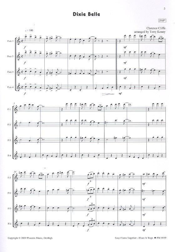 Easy Flutes together Kenny, Terry, arr. Cathrine, Terry, arr. 10 Stücke Shades of Blue Shoutin' Blue Biblical Blue Travelin' Blue Cotton Mill Blues Worried Man Blues Ragtime Blue Spiritual Blue Off-Beat Blue Tiger Rag