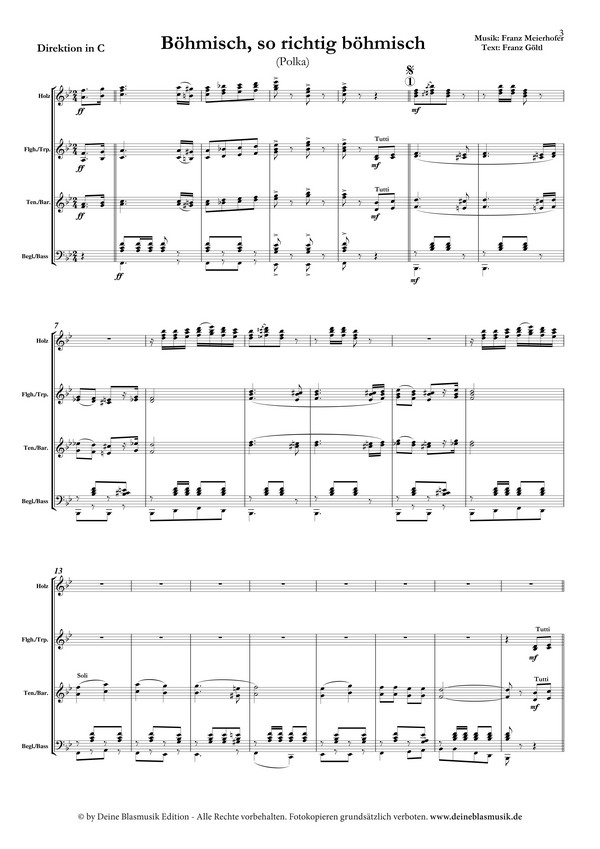 'Böhmisch, so richtig böhmisch' klingt die Blasmusik, wenn sich zwei Urgesteine der böhmischen Blasmusik zusammentun. Die beiden österreichischen Autoren Franz Meierhofer (Musik) und Franz Göltl (Text) schaffen mit dieser Polka abermals ein wunderbares Werk der böhmischen Blasmusik.
