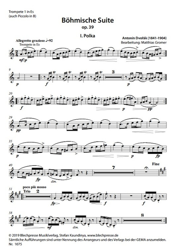 Gromer, Matthias, arr. Matthias Gromer wählt drei Sätze aus der auch Tschechische Suite genanten Komposition. Dvoraks Musik ist oft von Volksmusik beeinflusst, und so sind die Sätze sehr eingängig, besonders das abschließende lange Finale (Furiant). Das Stück ist zwar anspruchsvoll, aber im Vergleich zu anderen Stücken aus dem Repertoire von Mannheim Brass nicht das schwierigste.