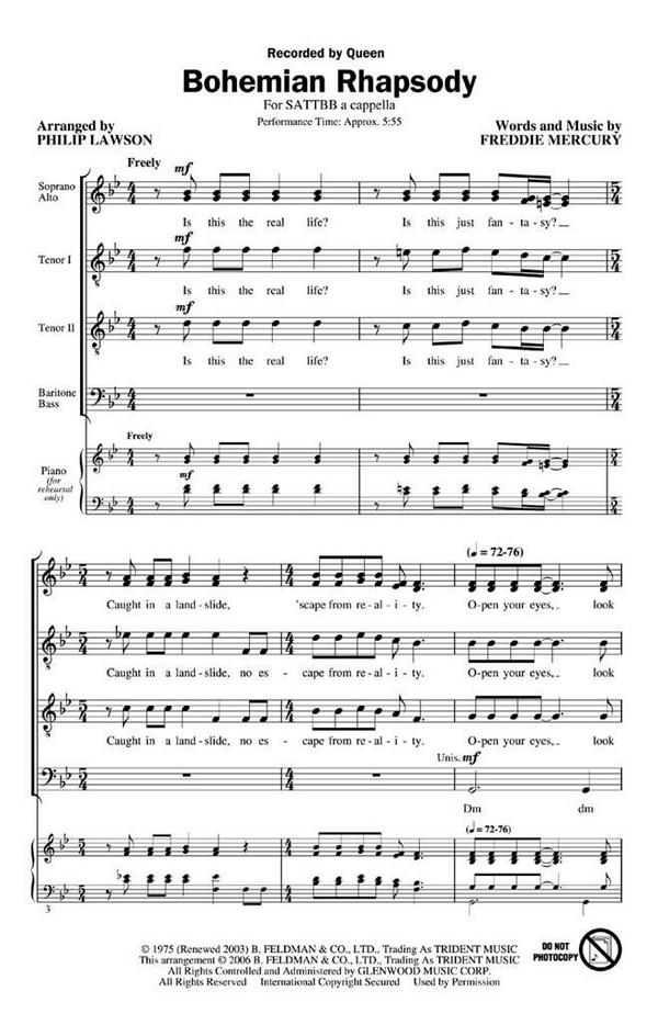 Bohemian Rhapsody for mixed chorus