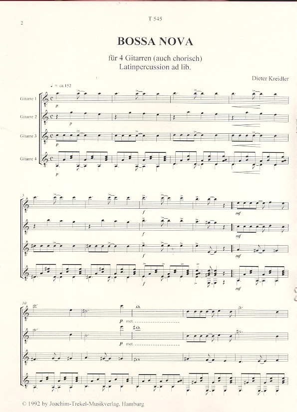 | Untertitel: | für 4 Gitarren und Latinpercussion ad lib. Partitur und Stimmen |