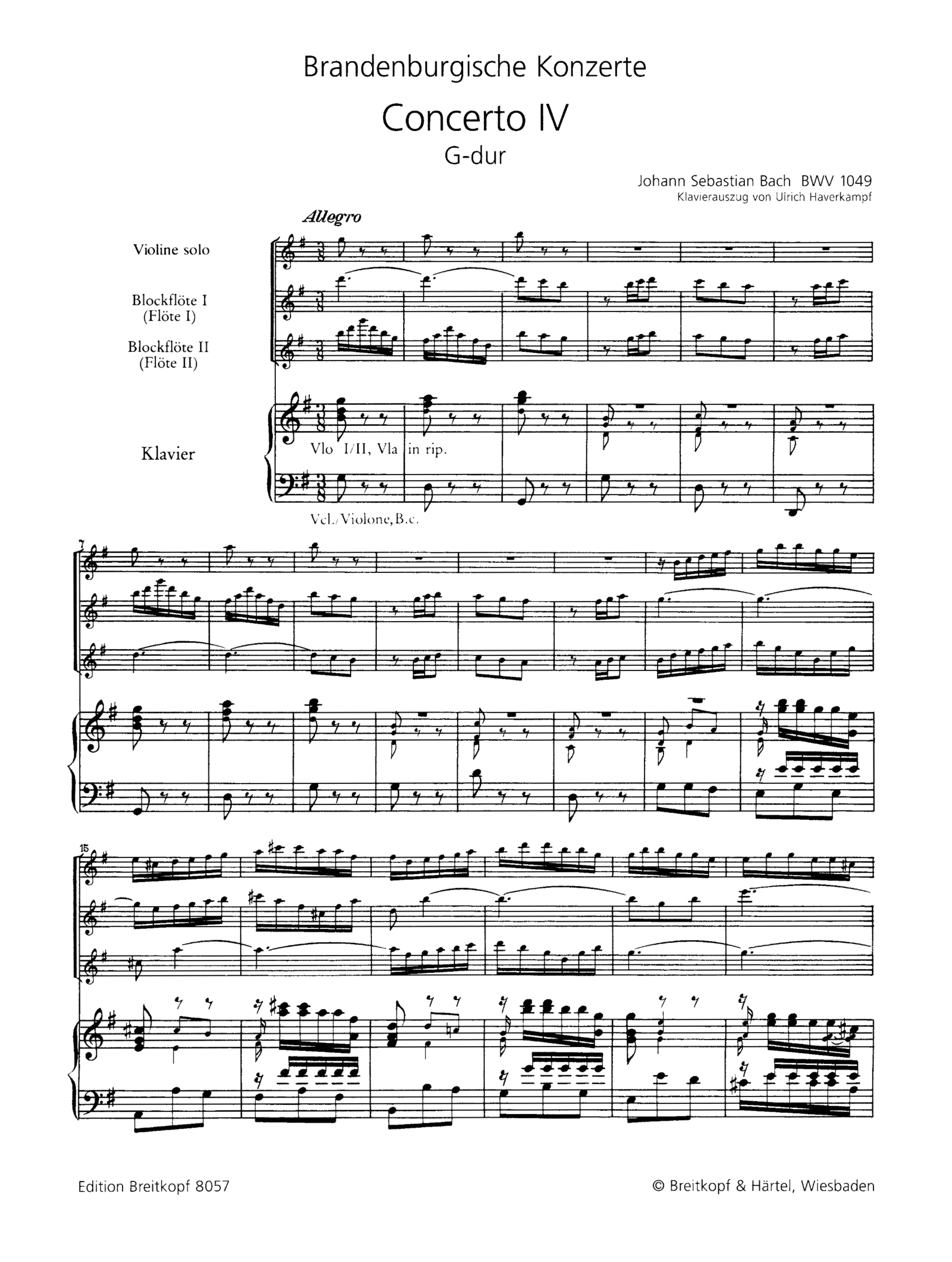 Continuo, BWV 1049 Klavierauszug Haverkampf, Ulrich, ed
