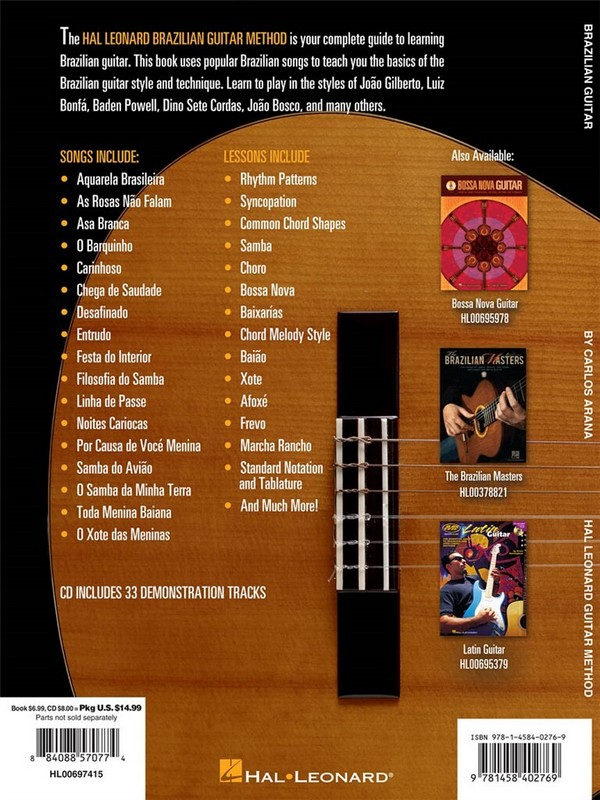 Hal Leonard Guitar Method Learn to play Brazilian Guitar with Step-by-Step Lessons and 17 great Songs Aquarela Brasileira (Aquarela Do Brasil)(Brasil) As Rosas Nao Falam Asa Branca Chega De Saudade (No More Blues) Desafinado Entrudo Festa Do Interior Filosofia Do Samba Linha De Passe Little Boat (O Barquinho) O Samba Da Minha Terra O Xote Das Meninas Por Causa de Você Menina Samba do Avião Toda Menina Baiana