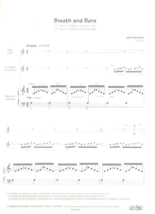| Untertitel: | für Flöte, Vibraphon und Marimba Partitur und Stimmen |