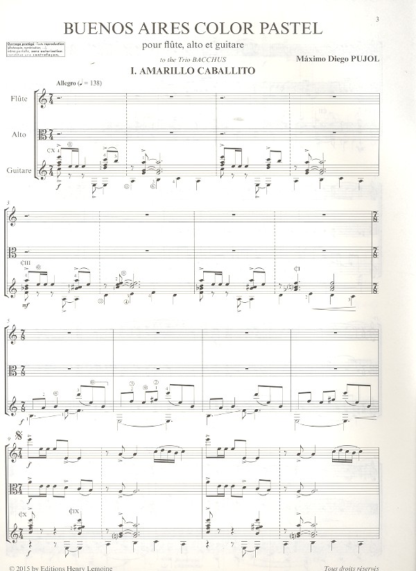 | Untertitel: | pour flûte, alto et guitare partition et parties |