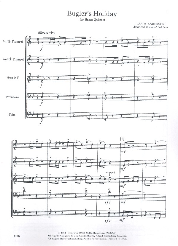 Bugler's Holiday for brass quintet