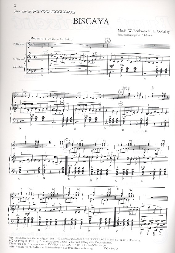 Bekannte und beliebte Melodien von gestern und heute Biscaya Geburtstags-Polka Ein bißchen Frieden Hawaii Tattoo Babicka When the Saints