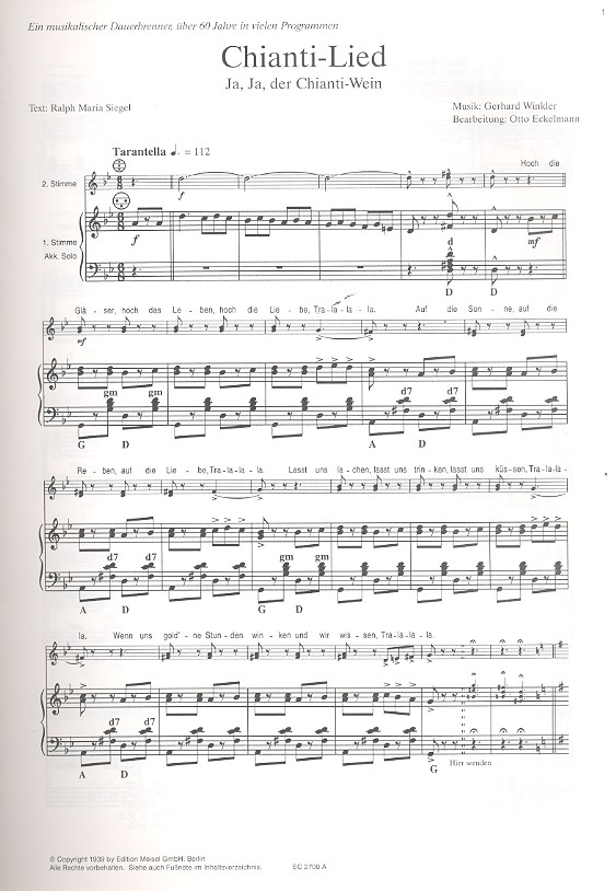 Chianti-Lied Amarillo Donna Vatra Ring of Fire Champs-Elysée Mit Liszt und Tücke (aus Liebestraum) Marsch-Potpourri aus Die lustige Witwe