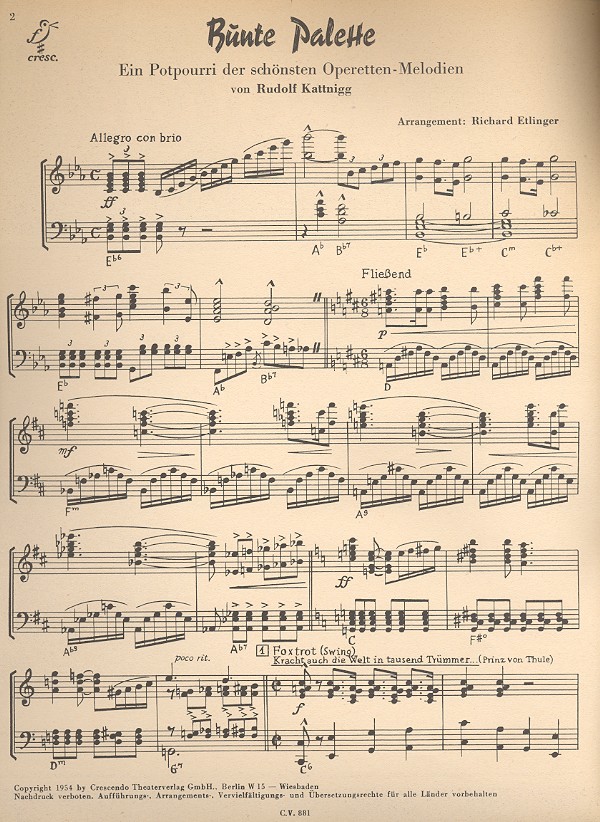 Ein Potpourri der schönsten Operetten-Melodien Etlinger, Richard, arr.