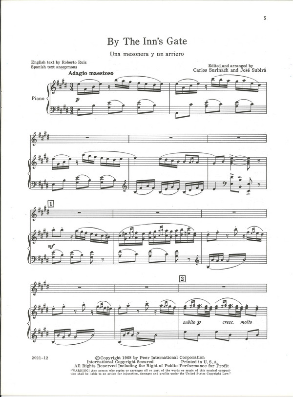4 Tonadillas no.3 Surinach, Carlos, ed arr. Subira, Jose, ed arr. Una mesonera y un arriero