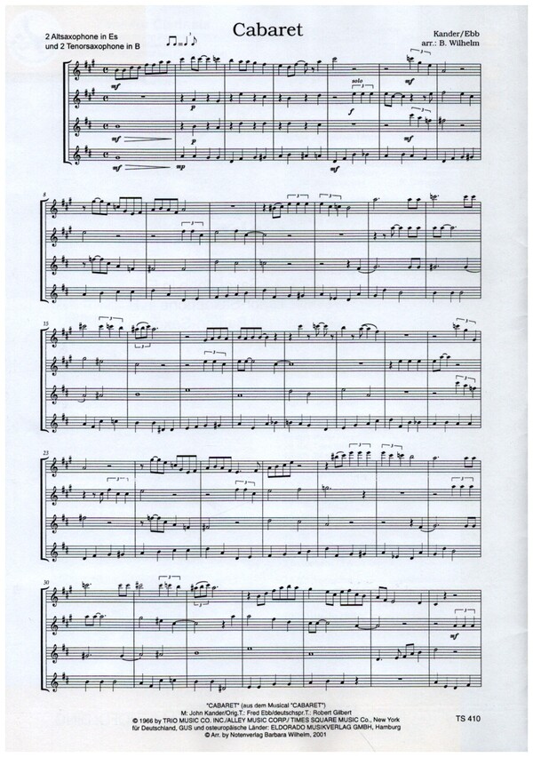 | Untertitel: | für 4 Saxophone (AATT) Partitur und Stimmen |