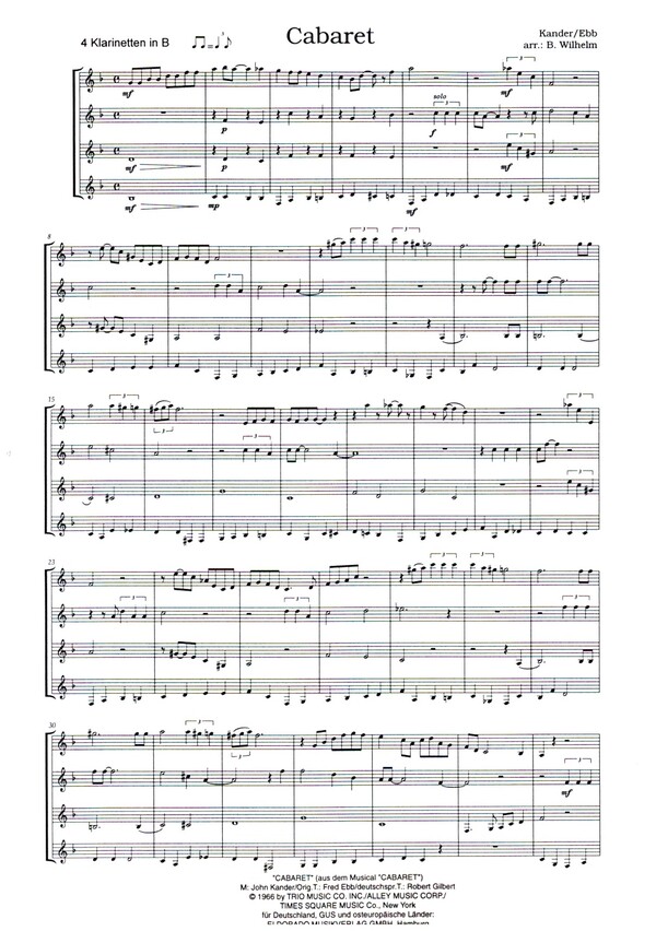 | Untertitel: | für 4 Klarinetten Partitur und Stimmen |