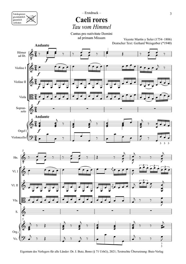 | Untertitel: | für Sopran-Solo, Streicher und Generalbass (2 Hörner ad lib) Partitur und Stimmen |