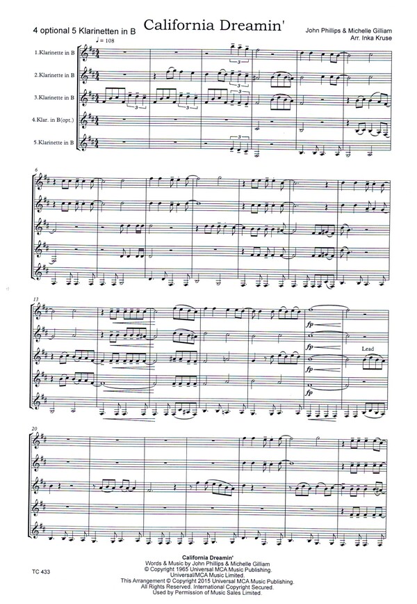 | Untertitel: | für 4-5 Klarinetten Partitur und Stimmen |