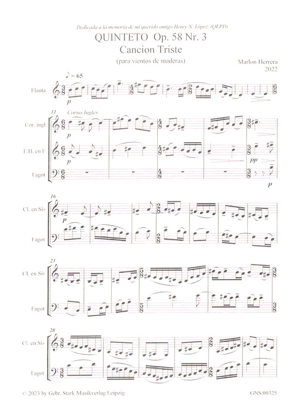 Produktinformationen "Canción triste (Quinteto op.58,3)"
