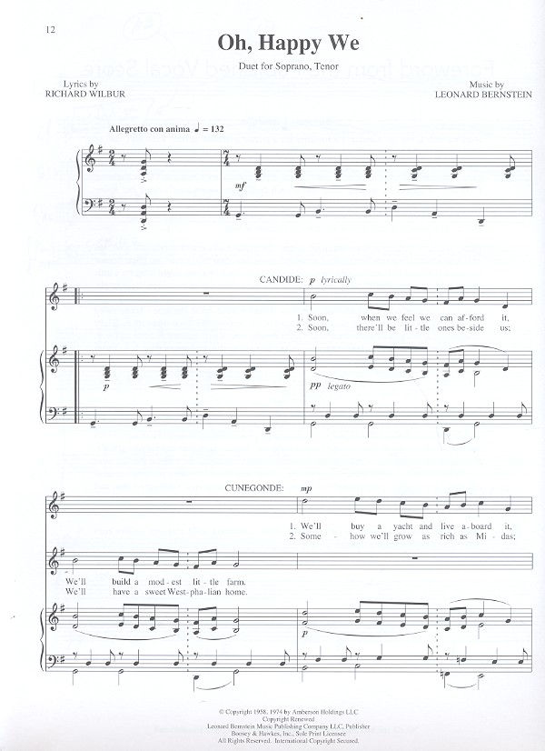 Wilbur, R., Words Latouche, J., Words The Best of all possible Worlds Oh happy we It must be so I am easily assimilated My Love Bon voyage Make our Garden grow