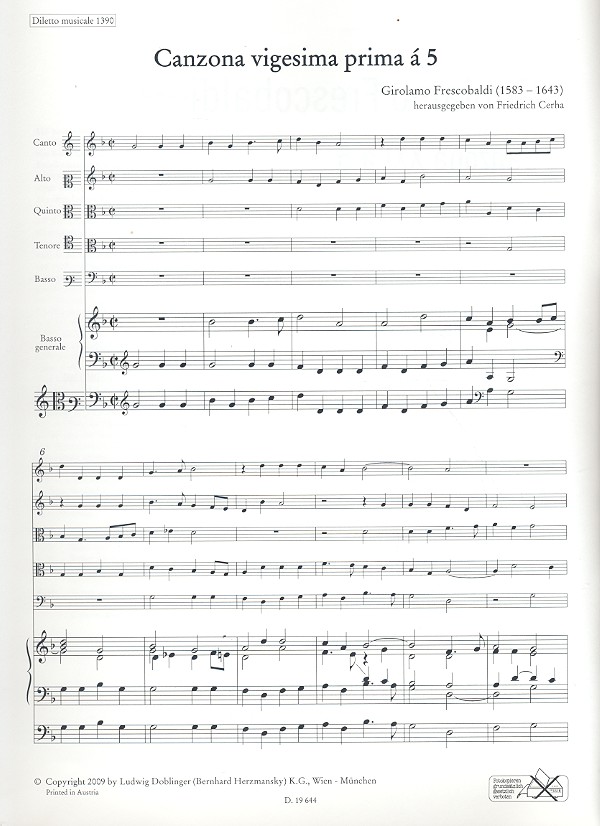 Canzona XXI a 5 für 5 Instrumente und Bc