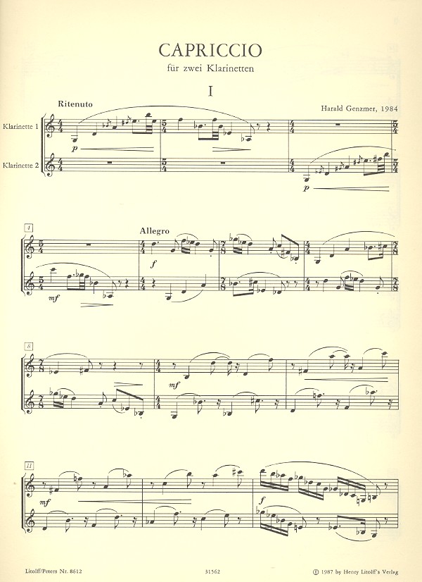 | Untertitel: | für 2 Klarinetten Spielpartitur |