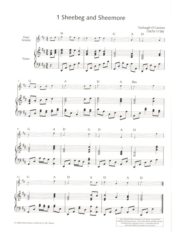Steinbach, Patrick, ed Löll, Wolfgang, ed Sheebeg and Sheemore Princess Royal All alive Clergy's Lamentation Blind Mary Squire Wood's Lamentation on the Refusal of his Halfpence Planxty Kelly Carolan's Quarrel with the Landlady Lament for Terence MacDonough Mrs Anne MacDermott Roe Kean O'Hara Planxty Lady Wrixon Carolan's Concerto Morgan Magan Carolan's Dream