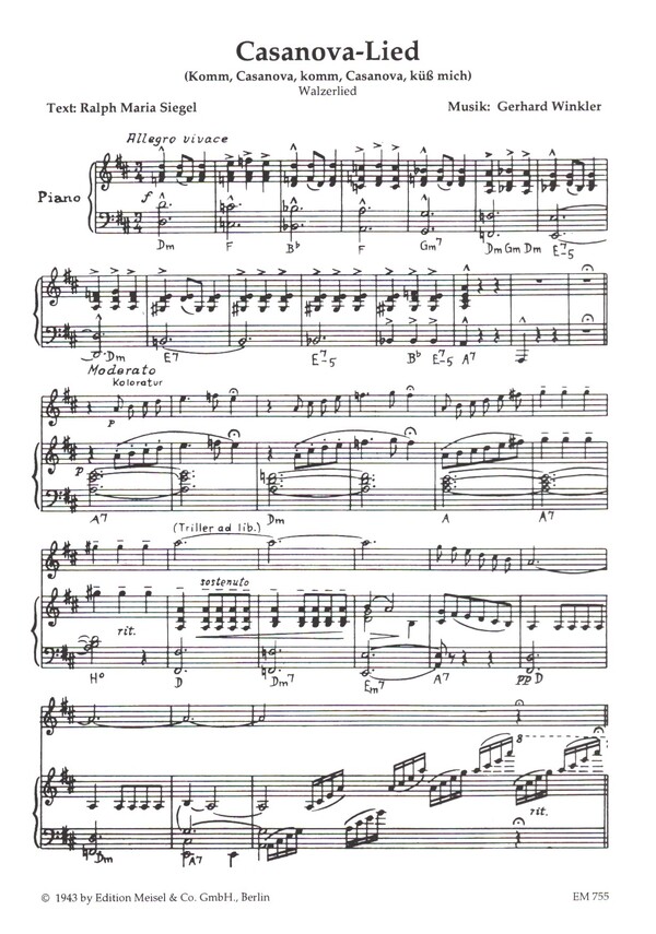 | Untertitel: | für Gesang und Klavier Siegel, Ralph Maria, Text |