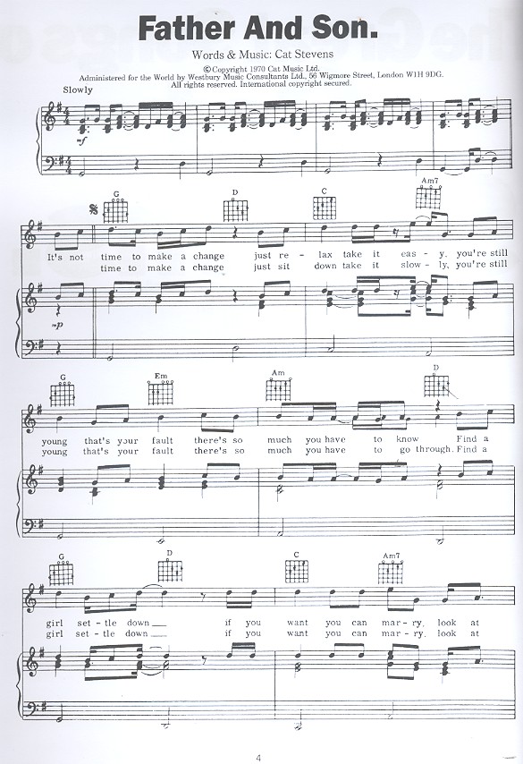 Father and son The first cut is the deepest Hard headed woman I wish, I wish Lady d'arbanville Maybe you're right Morning has broken Sad Lisa Tuesday's dead Wild world Where do the children play