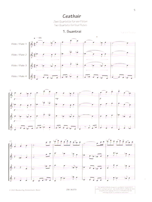 | Untertitel: | für 4 Flöten Partitur und Stimmen |