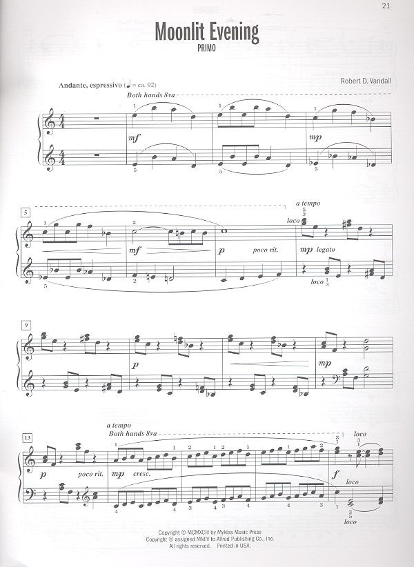 Seven Diverse Duets for Early Intermediate Pianists Birch Tree Rag Holiday Waltz Irish Air Marche Macabre Moonlit Evening Shadow Dance The Water is Wide
