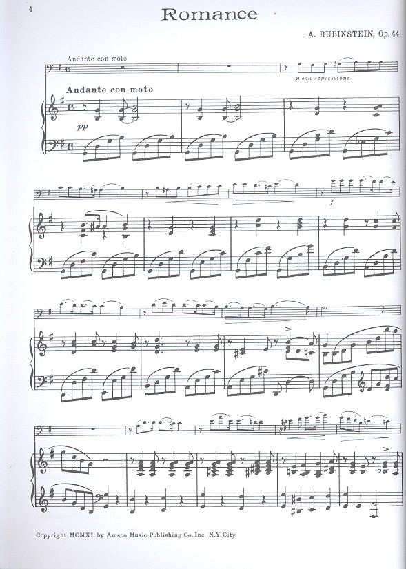 Habanera (Bizet) Cradle song (Brahms) Nocturne (Chopin) Reverie (Debussy) Humoreske (Dvorak) Salut d'amour (Elgar) Ave Maria (Gounod) I love thee (Grieg) Solvejg's song (Grieg) Largo (Händel) Elegie (Massenet) On Wings of Song (Mendelssohn) Barcarolle (Offenbach) Melody in F (Rubinstein) Le cygne (Saint-Saens) Ave Maria (Schubert) Moment musical (Schubert) Träumerei (Schumann) Valse triste (Sibelius) Chanson triste (Tschaikowsky)