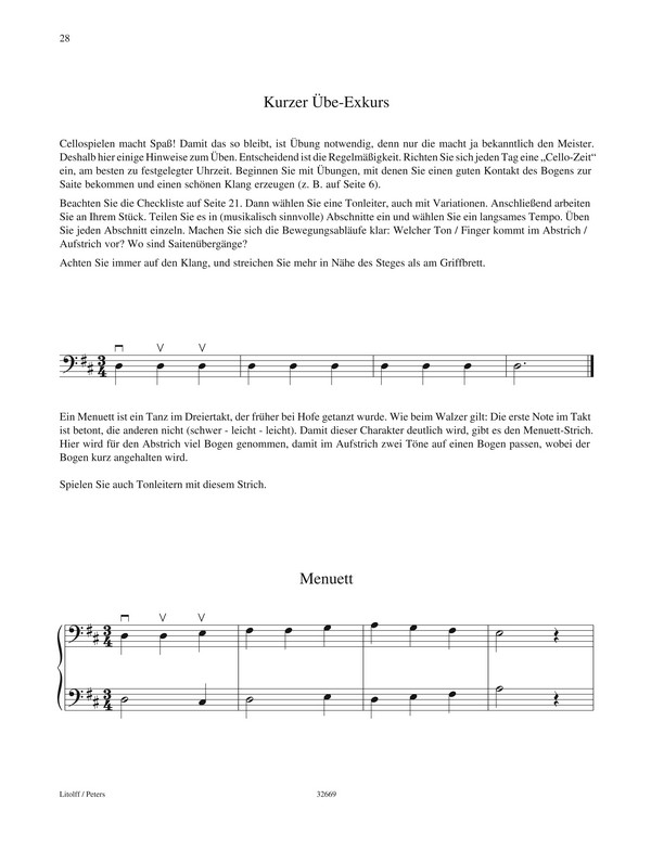 Celloschule Violoncello Eine Einführung für neugierige Erwachsene teilweise mit Begleitung eines zweiten Violoncellos oder Klavierbegleitung Klare und übersichtliche Lernschritte Schritt für Schritt und praxisnah werden die Schüler an das Notenlesen herangeführt Kurze Stücke steigern die Motivation Zahlreiche Duette für Schüler und Lehrer schulen das Gehör Durch Anregungen zur Improvisation kommt auch die eigene Phantasie nicht zu kurz Darüber hinaus vermitteln kleine Exkurse musikgeschichtliche Grundlagen
