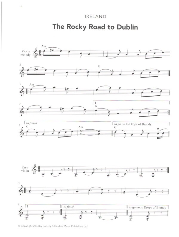 Huws, Jones, E., arr. Traditional fiddle music from around the World Ireland: The Rocky Road to Dublin Drops of Brandy Rights of Man John Ryan's Polka The Humours of Westport Isle Of Man: Moylley gys Jee my Chaarjyn (Praise to God, my Friends) Ny Kirree fo Niaghtey (The Sheep under the Snow) Three Little Boats Went Out to Sea Galicia: Pasadobre Popular Muineira das Zocas (Muineira from Zocas) Danza de Carino (Dance from Carino) Muineira: Ponte de San Paio (Muineira: The Bridge of Saint Paul) Alborada de Pontecaldelas (Alborada from Pontecaldelas) Wales: Nyth y Gwcw (The Cuckoo's Nest) Tros y Garreg (Over the Stone) Mwynen Cynwyd (The Mais of Cynwyd) Glwysen (The Fairest One) Croen y Ddafad Felen (The Yellow Shepskin) Brittany: Gavotte: Je vous dis, Mademoiselle (Gavotte: I tell you, Miss) An Dro (Dance Tunes) Hanter Dro (Dance Tunes) - Silvestrig Cornwall: Miner's Fancy Furry Dance Tom Bawcock's Treat Scotland: Drummond Castle Mucin' o' Geordie's Byre Scotland the Brave Speed the Plough Pastoral (Gin ye Kiss my Wife)