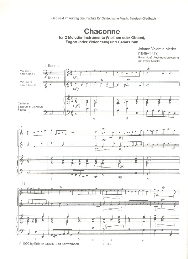 Produktinformationen "Chaconne für 2 Violinen (Oboen), Fagott"
