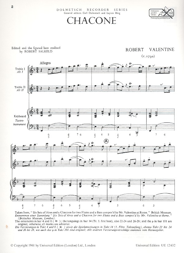 | Komponist: | Valentine, Robert (Roberto Valentino) |