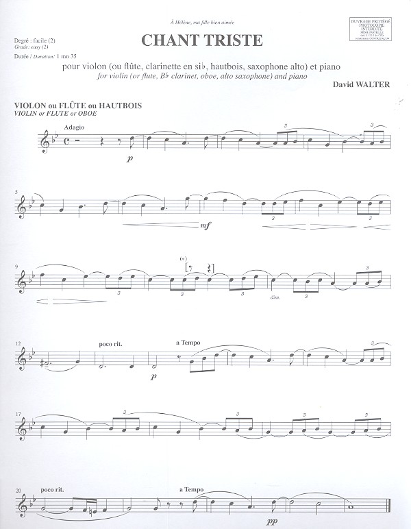 Produktinformationen "Chant triste pour violon (flûte/clarinette/"