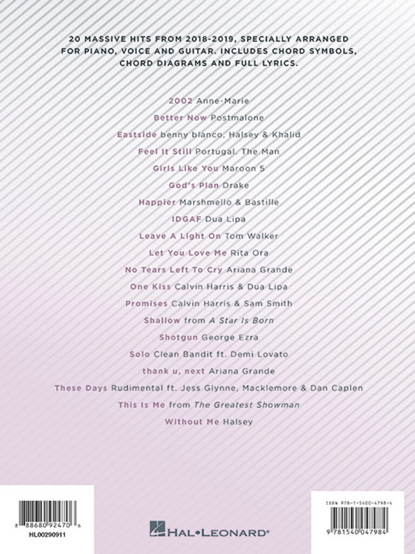 20 massive Singles 2002 Better now Eastside Feel it still Girls like You God's Plan Happier IDGAF Leave a Light Let You love me No Tears left to cry One Kiss Promises Shallow Shotgun Solo Thank U next These Days This is me Without me