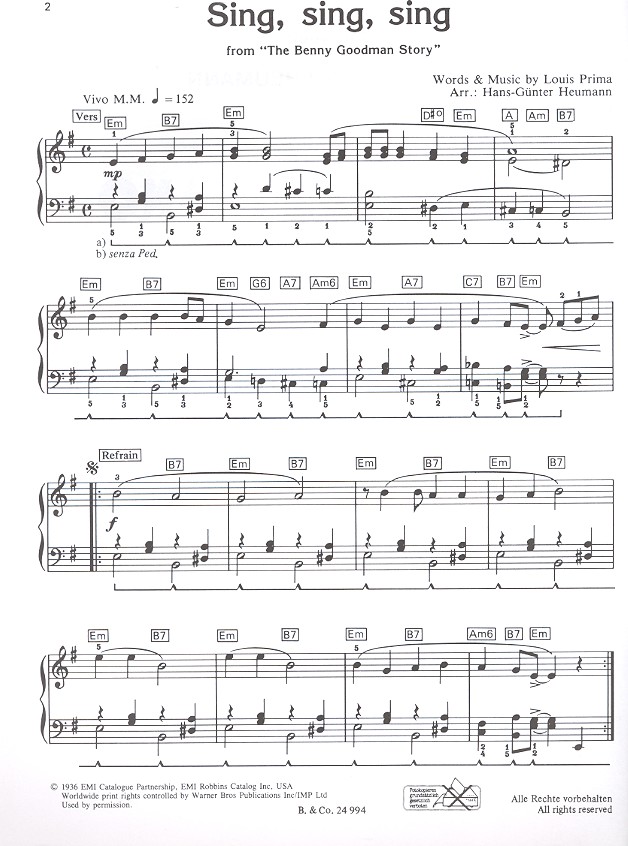 Children's Jazz Piano enthät elf typische Jazz-Stücke in sehr leichter Fassung für Klavier. Hier können die kleinen Klavierschüler schon mal in die typische Jazz-Phrasierung und das Jazz-Feel hinein schnuppern. Eine willkommene Abwechslung zum tradtitionellen, klassischen Unterrichtsmaterial! Heumann, Hans-Günter, bearb. Sing sing sing Alexanders's Ragtime Band Sweet Georgia Brown The Man I love Tea for two Jelly roll Blues Laura's Rag The Lady is a Tramp Lullaby of Birdland Every Night when the Sun goes Swing low sweet Chariot It's jazzy