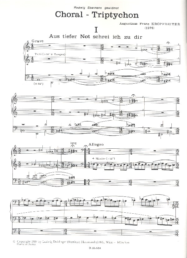 Choraltriptychon Aus tiefer Not schrei ich zu dir O Mensch bewein Christ ist erstanden