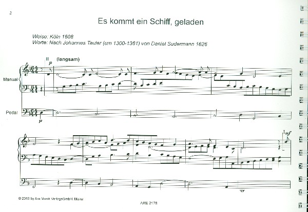 Advent : Es kommt ein Schiff geladen Wie soll ich dich empfangen Weihnachten : Wir Christeinleut haben jetzund Freud Fröhlich soll mein Herze springen Jahreswende : Freut euch ihr lieben Christen all Epiphanias : O Jesu Kreuz wahres Licht Passion : Jesu Kreuz Leiden und Pein O Traurigkeit o Herzeleid Ostern : Erstanden ist der heilig Crhist Heut triumphieret Gottes Sohn Himmelfahrt : Auf diesen Tag bedenken wir Pfingsten : O heiliger Geist o heiliger Gott Schmückt das Fest mit MAien Triitatis : Gott der Vater wohn uns bei Johannestag : Wir wollen singn ein' Lobgesang Michaelistag : Heut singt die liebe Christenheit Reformationstag : Nun freut euch liebe Christen gmein Bußtag : Aus tiefer Not schrei ich zu dir Ende des Kirchenjahres : Es ist gewisslich an der Zeit