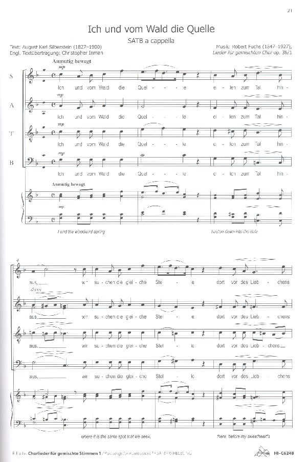Lieder op.36: Ich und vom Wald die Quelle (August Karl Silberstein) Liebesbangen (Anastasius Grün) Ich liebe was fein ist (Julius Rodenberg) Ständchen (Heinrich Seidel) Gute Nacht (Joseph von Eichendorff) Schmetterlingslied (Heinrich Seidel) 8 Lieder op.64: Im Walde [Waldesnacht] (Paul Heyse) Die schönste Rose die da blüht (Carl Leberecht Immermann) Ein Stündlein wohl vor Tag (Eduard Mörike) Zwiegesang (Robert Reinick) Das kranke Mädchen (Robert Reinick) Die Nachtigall (Theodor Storm) Mondaufgang (Max Kalbeck) Schmeichelkätzchen (Joseph Huggenberger)