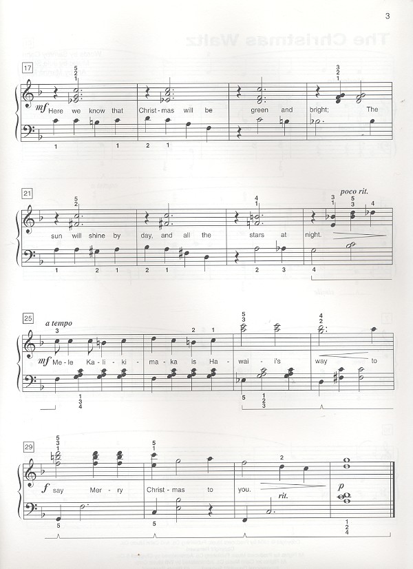 Basic Piano Library Christmas is Christmas Song Christmas Waltz Happy Holiday It's beginning to look like Christmas Let it snow let it snow let snow Marshmallow World Mele Kalikimaka Rockin' around the Christmas Tree Some Children see Him