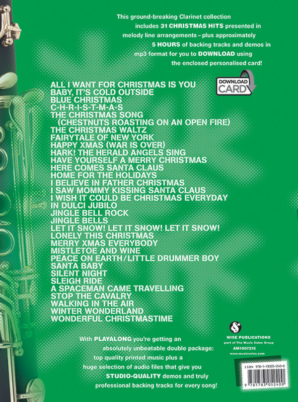 A Spaceman came Travelling All I want for Christmas is You Baby it's cold outside Blue Christmas C-H-R-I-S-T-M-A-S Fairytale of New York Happy Xmas (War is over) Hark the Herald Angels sing Have Yourself a merry little Christmas Here comes Santa Claus Home for the Holidays I believe in Father Christmas I saw Mommy kissing Santa Claus I wish it could be Christmas every Day In dulci jubilo Jingle Bell Rock Jingle Bells Let it snow let it snow let it snow Lonely this Christmas Merry Xmas everybody Mistletoe and Wine Peace on Earth/Little Drummer Boy Santa Baby Silent Night Sleigh Ride Stop the Cavalry The Christmas Song (Chestnuts roasting on an open Fire) The Christmas Waltz Walking in the Air Winter Wonderland Wonderful Christmastime