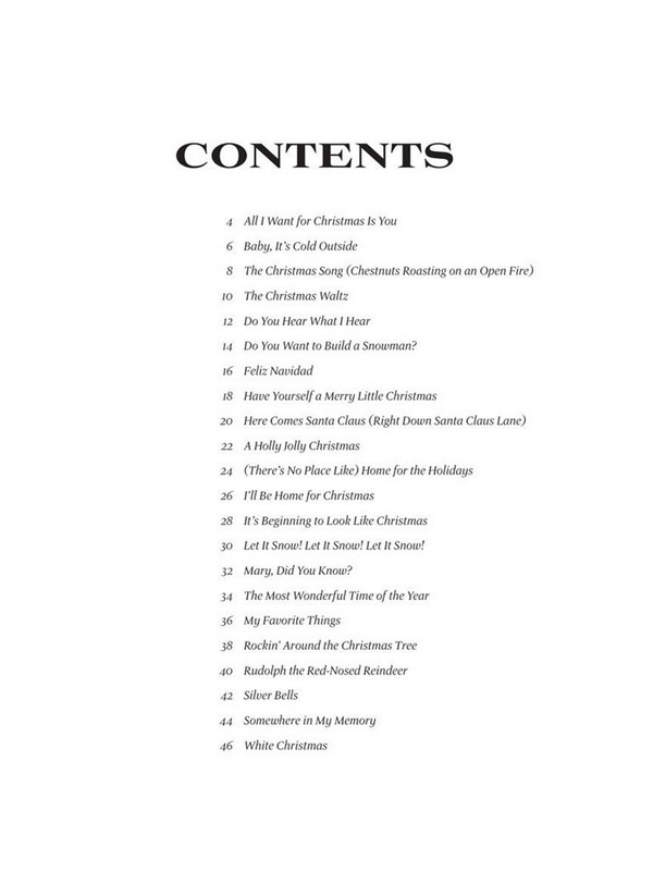 Easy Instrumental Duets 22 Holiday Favorites Songlist: 1. Mary, Did You Know? 2. All I Want For Christmas Is You 3. Feliz Navidad 4. Baby, It's Cold Outside 5. The Christmas Song (Chestnuts Roasting On An Open Fire) 6. The Christmas Waltz 7. Do You Hear What I Hear 8. Do You Want to Build a Snowman? 9. Have yourself a merry little Christmas 10. Here Comes Santa Claus (Right Down Santa Claus Lane) 11. A Holly Jolly Christmas 12. (There's No Place Like) Home for the Holidays 13. I'll Be Home For Christmas 14. It's Beginning to Look Like Christmas 15. Let It Snow! Let It Snow! Let It Snow! 16. The Most Wonderful Time of the Year 17. My Favorite Things 18. Rockin' Around the Christmas Tree 19. Rudolph the Red-nosed Reindeer 20. Silver Bells 21. Somewhere In My Memory 22. White Christmas