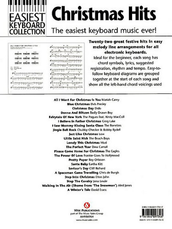 22 easy to play melody line arrangements All I want for Christmas is You Blue Christmas Christmas Day Donna and Blitzen Fairytale of New York I believe in Father Christmas I saw Mommy kising Santa Claus Jingle Bell Rock Just like Christmas Little Saint Nick Loneöy this Christmas The perfect Year Please come home for Christmas The Power of Love Pretty Paper Santa Baby Saviour's Day A Spaceman came travelling Step into Christmas Stop the Cavalry Walking in the Air (Theme from The Snowman) A Winter's Tale